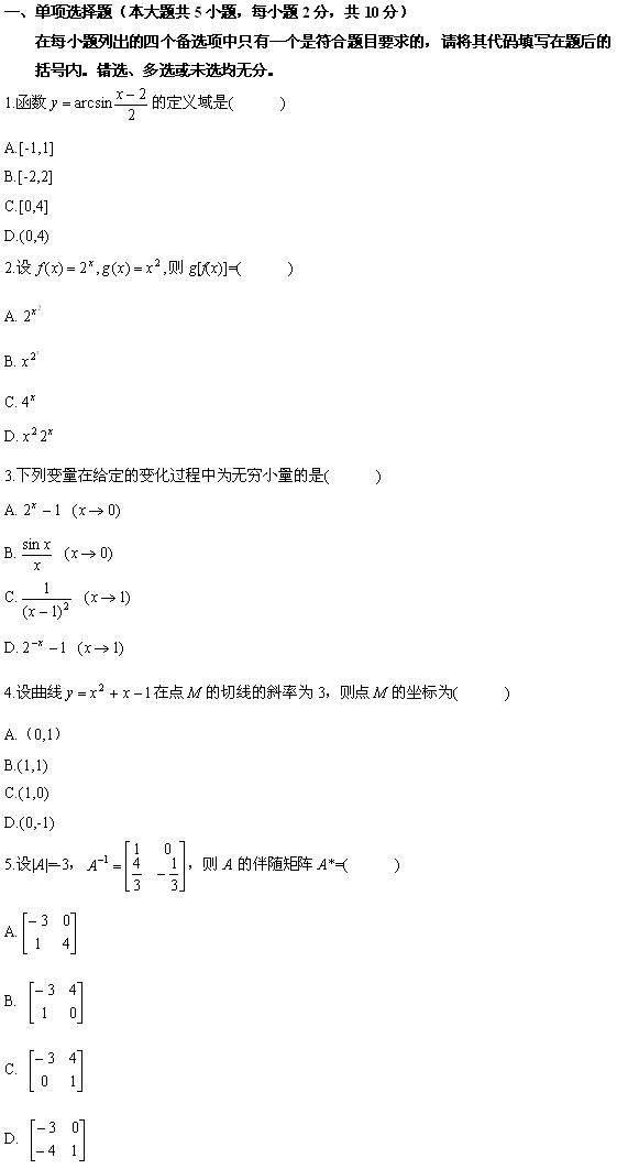 全国2010年1月高等教育自学考试高等数学(工专)试题 课程代码:00022