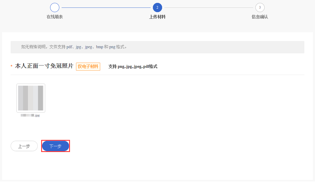 (2)上传材料。照片须近照、标准证件照