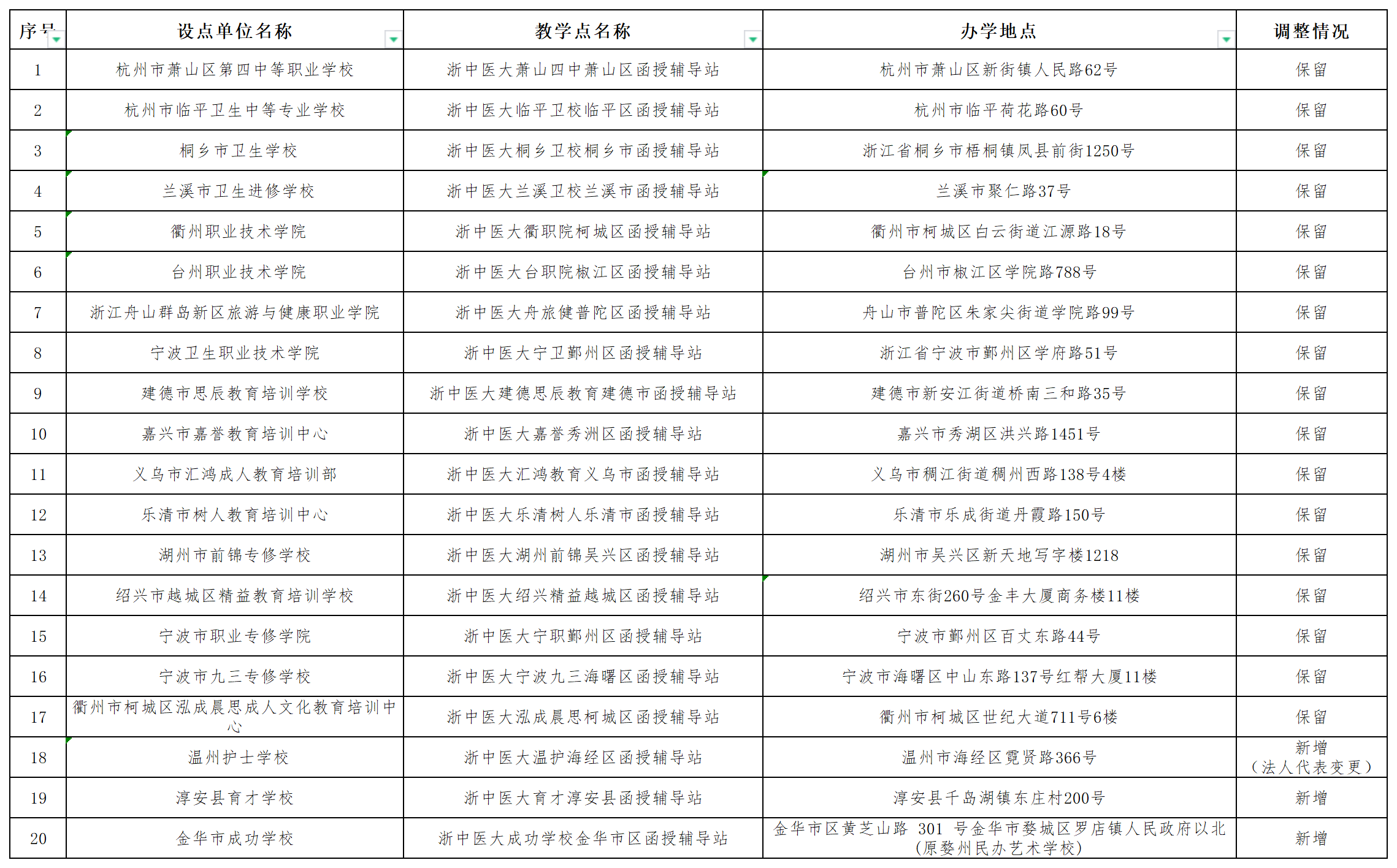 根据《浙江省教育厅办公室关于做好 2024 年高等学历继续教育专业和校外教学点设置与管理工作的通知》(浙教办函【2023】363号)要求,现将我校2024年高等学历继续教育校外教学点设置情况进行公示,具体情况如下: