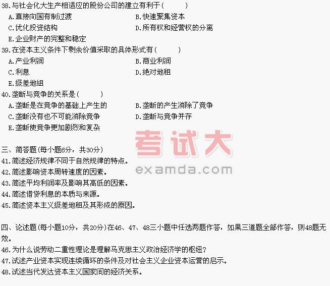 全国2002年10月高等教育自学考试马克思主义政治经济学原理试题