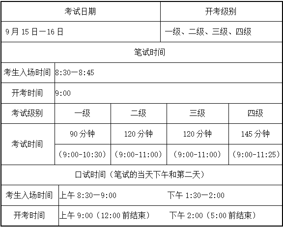 1.考生须按规定的时间入场,迟到考生不得进入考场。上午8:45后禁止迟到考生进入笔试考场。口语考试上午9:00后、下午2:00后禁止考生进入口试候考室。